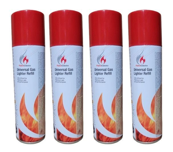 4 x Feuerzeug Butan Gas Universal Feuerzeuggas Nachfüllgas Feuer Zeuge 5 Adapter