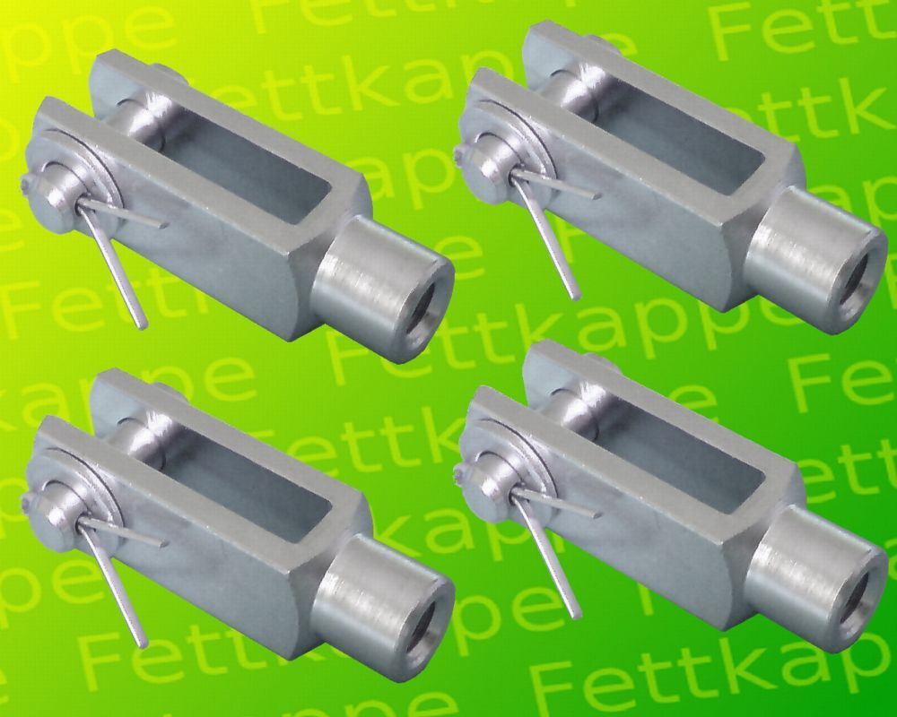 4 x Gabelkopf 16x64 M16 inkl. Splintbolzen DIN71751 verzinkt - Gabelgelenk Gabelköpfe