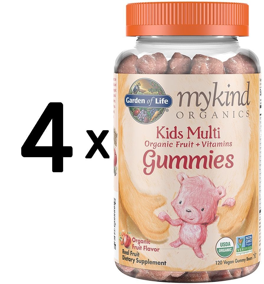4 x Garden of Life Mykind Organics Kids Multi Gummies, Fruit Flavor - 120 vegan gummy