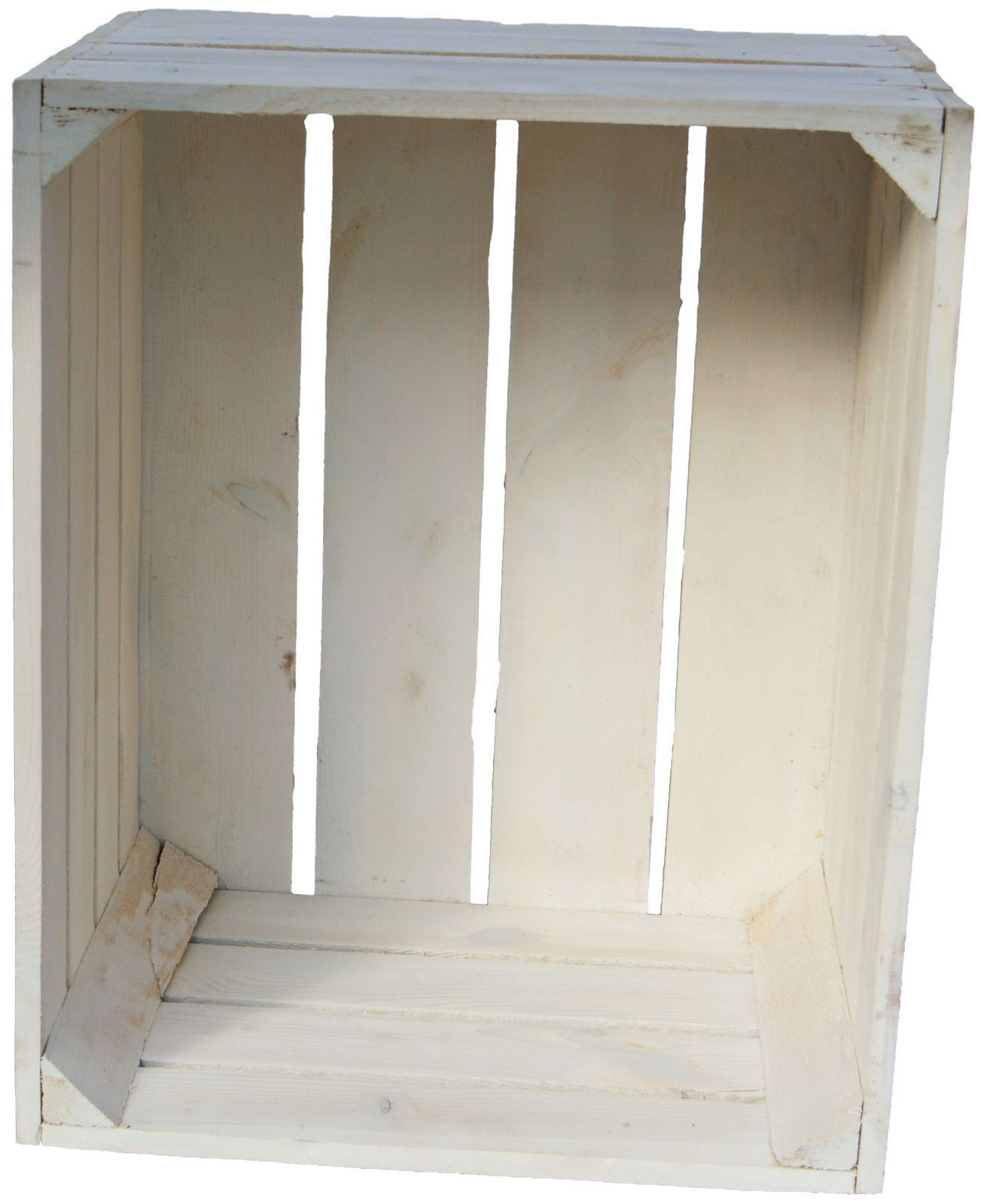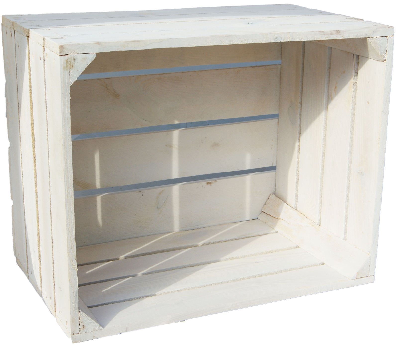 4 Stück Obstkisten aus dem Alten Land Beschreibung: Es werden 4 Stück geliefert! Diese massiven Weinkisten sind gebraucht und wurden weiß bemalt. Diese Kisten sind sehr massiv und haben eine dicke Wandstärke.Kisten besitzen keinen Aufdruck! Maße: • Länge:50cm • Höhe: 31cm • Breite: 40cm Zustand: • guter Zustand • weiss