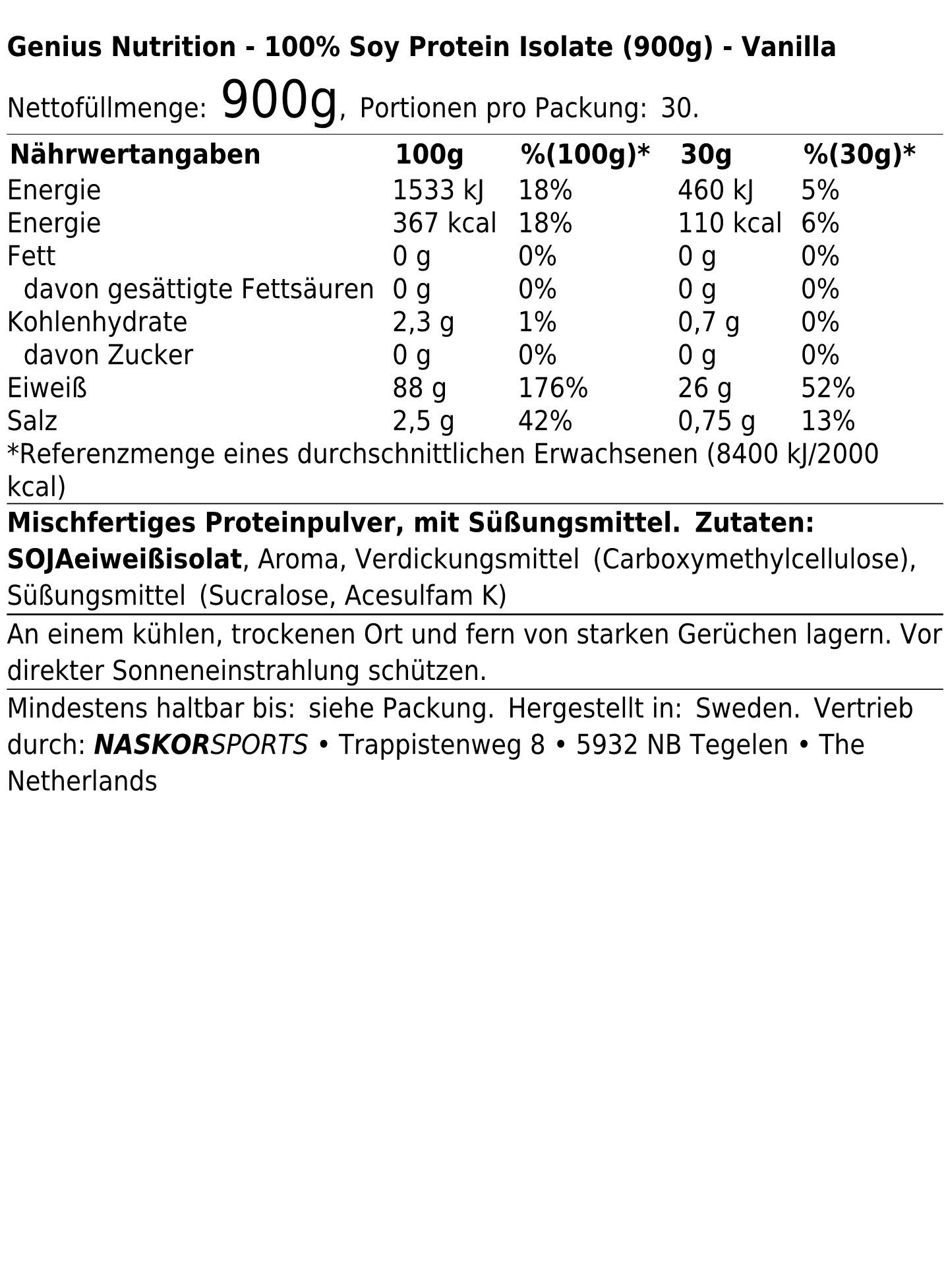 4 x Genius Nutrition 100% Soy Protein Isolate (900g) Vanilla