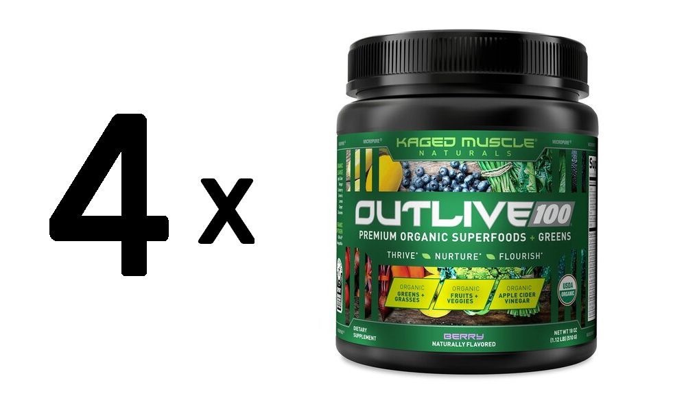 4 x Kaged Muscle Outlive 100, Berry - 510g