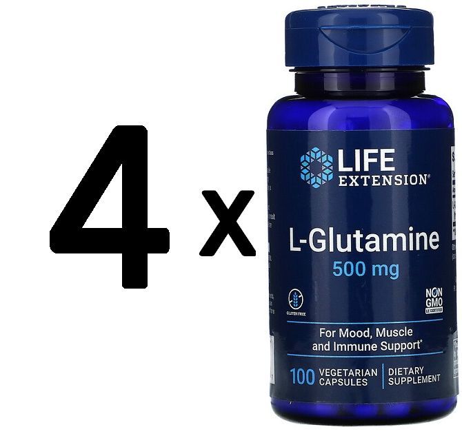 4 x Life Extension L-Glutamine, 500mg - 100 vcaps