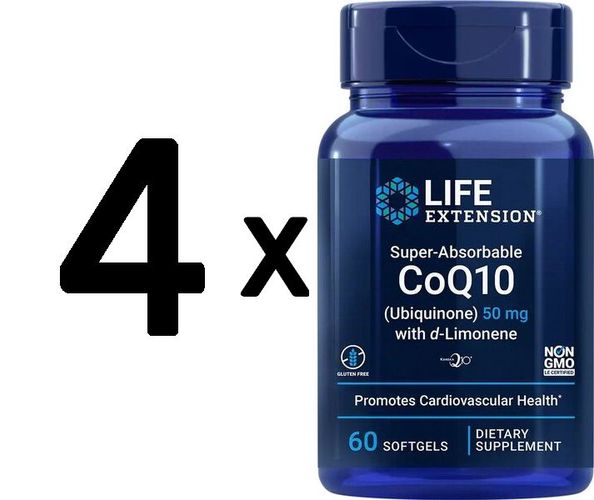 4 x Life Extension Super-Absorbable CoQ10 (Ubiquinone) with d-Limonene, 100mg - 60 so