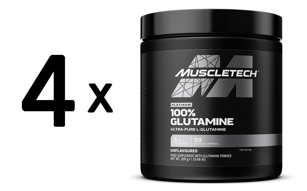 MuscleTech 4 x MuscleTech Platinum 100% Glutamine - 300g