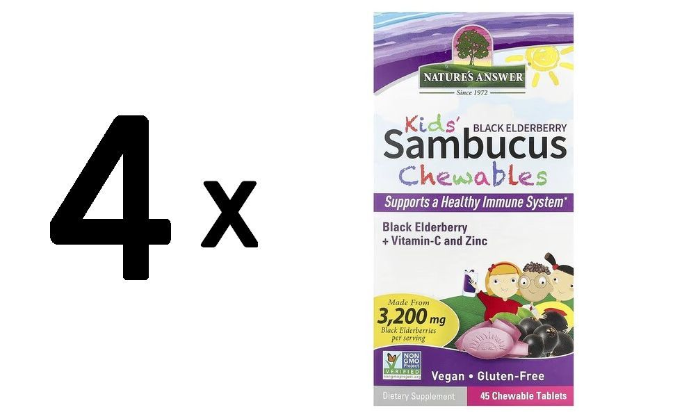 4 x Natures Answer Kid's Sambucus Chewables, Black Elderberry - 45 chewable tablets