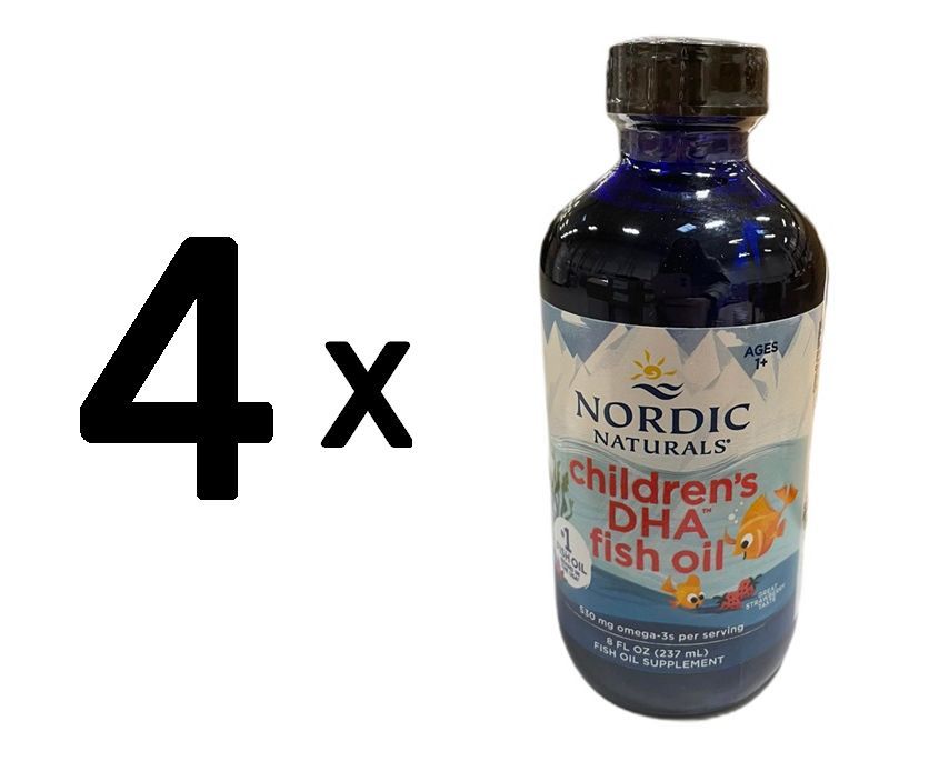 4 x Nordic Naturals Children's DHA Fish Oil, 530mg Omega-3 Strawberry - 237 ml