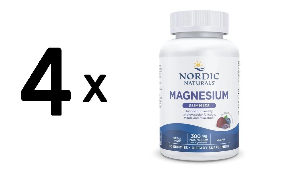 4 x Nordic Naturals Magnesium Gummies, Blueberry Lavender - 60 gummies
