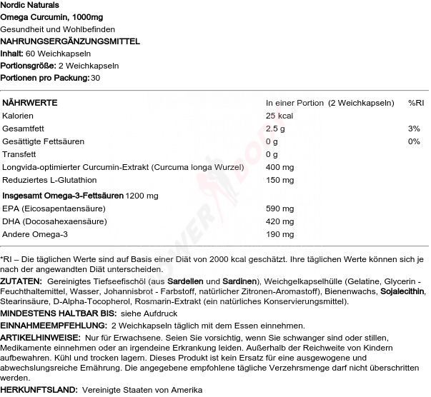4 x Nordic Naturals Omega Curcumin, 1000mg - 60 softgels