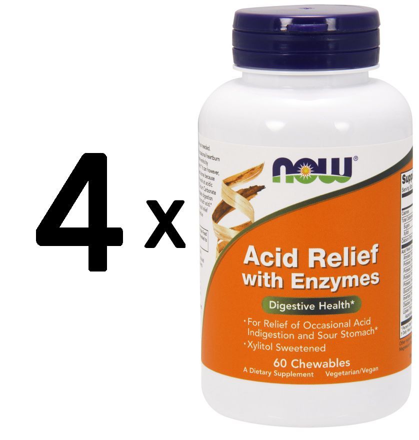 NOW Foods 4 x NOW Foods Acid Relief with Enzymes - 60 chewables