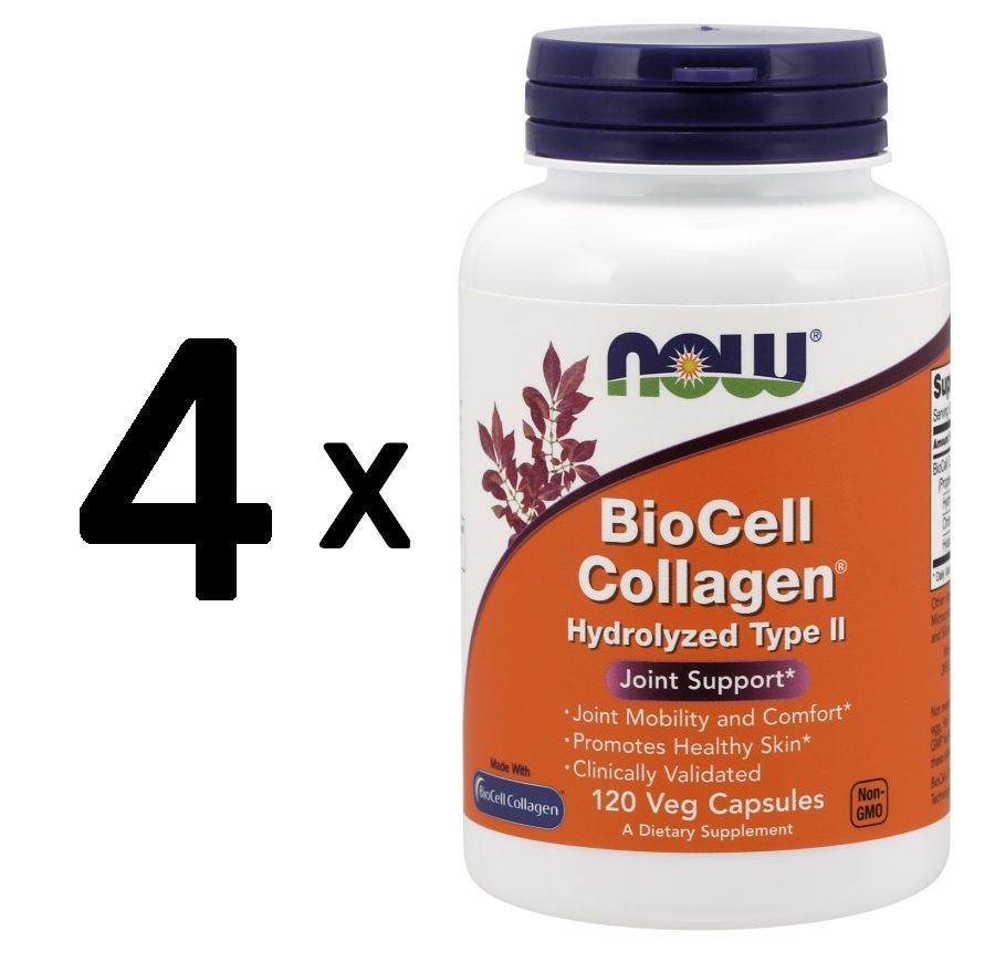 NOW Foods 4 x NOW Foods BioCell Collagen Hydrolyzed Type II - 120 vcaps