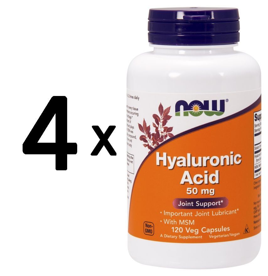 NOW Foods 4 x NOW Foods Hyaluronic Acid with MSM, 50mg - 120 vcaps