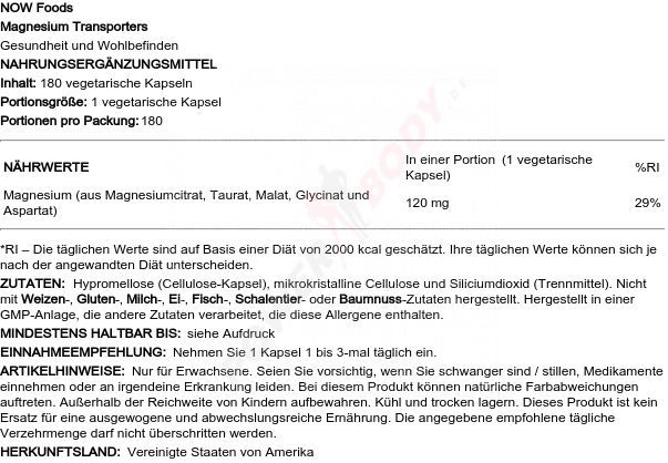 NOW Foods 4 x NOW Foods Magnesium Transporters - 180 vcaps