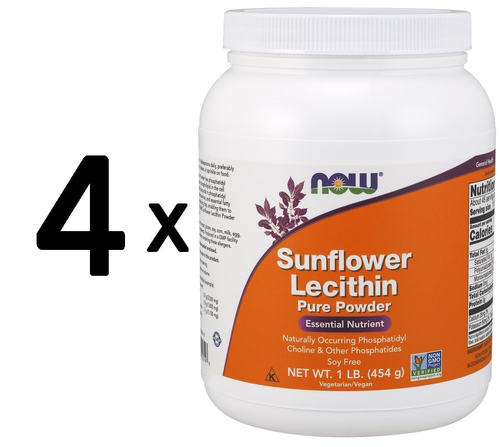 NOW Foods 4 x NOW Foods Sunflower Lecithin, Pure Powder - 454g