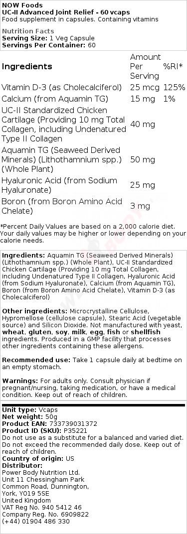 NOW Foods 4 x NOW Foods UC-II Advanced Joint Relief - 60 vcaps