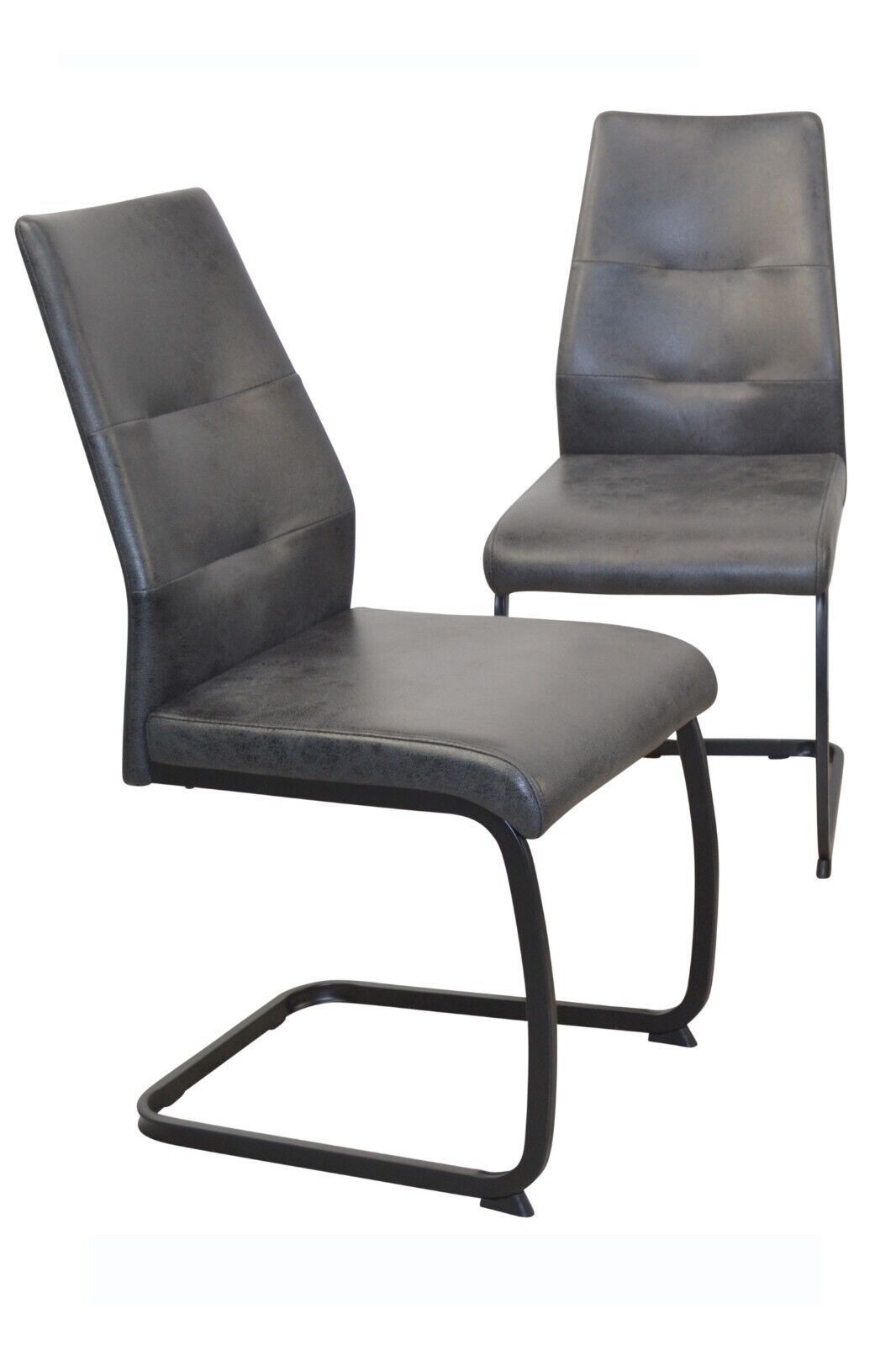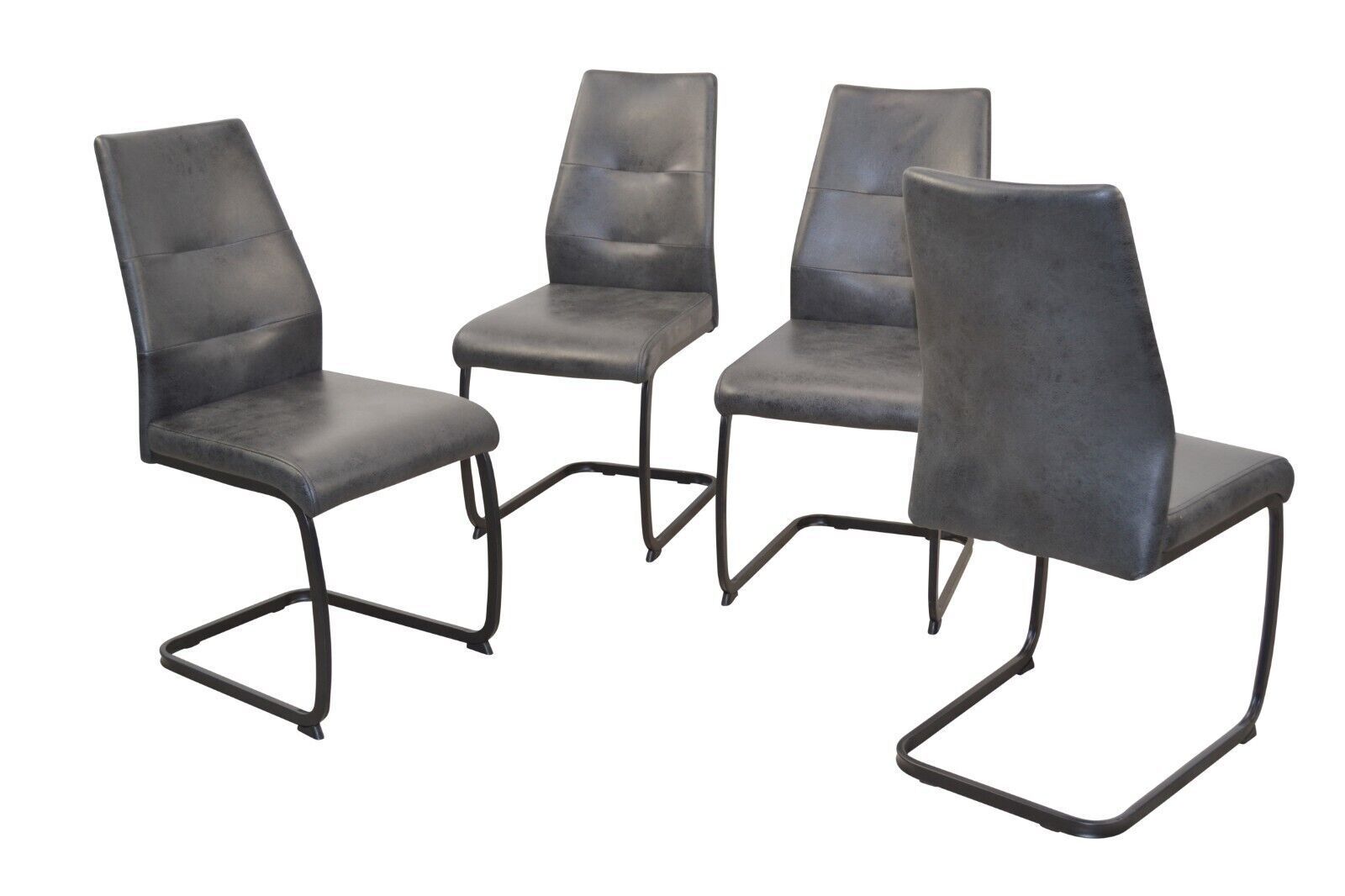 4er Set Stühle Mikrofaser anthrazit Hochwertiger Schwingstuhl mit einem Gestell aus Vierkantrohr, schwarz pulverbeschichtet. Sitz und Rücken sind bequem schaumstoffgepolstert und mit einem pflegeleichten Mikrofaserbezug (100% Polyester) in Vintage-Optik, mit Ziernähten, bezogen. Belastbarkeit je Stu