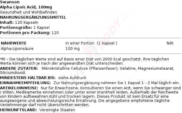4 x Swanson Alpha Lipoic Acid, 100mg - 120 caps