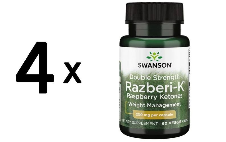 4 x Swanson Double Strength Razberi-K, 200mg - 60 vcaps