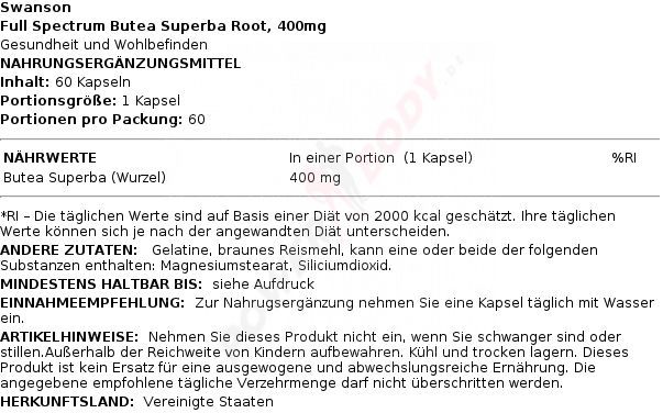 4 x Swanson Full Spectrum Butea Superba Root, 400mg - 60 caps
