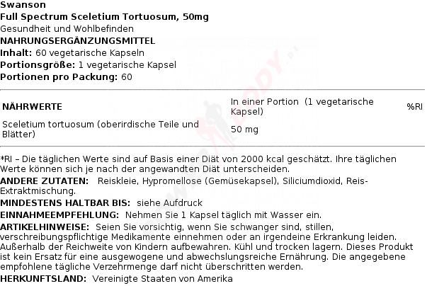 4 x Swanson Full Spectrum Sceletium Tortuosum, 50mg - 60 vcaps