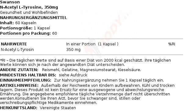 • 3 x Swanson N-Acetyl L-Tyrosine, 350mg - 60 caps