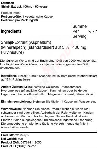 4 x Swanson Shilajit Extract, 400mg - 60 vcaps