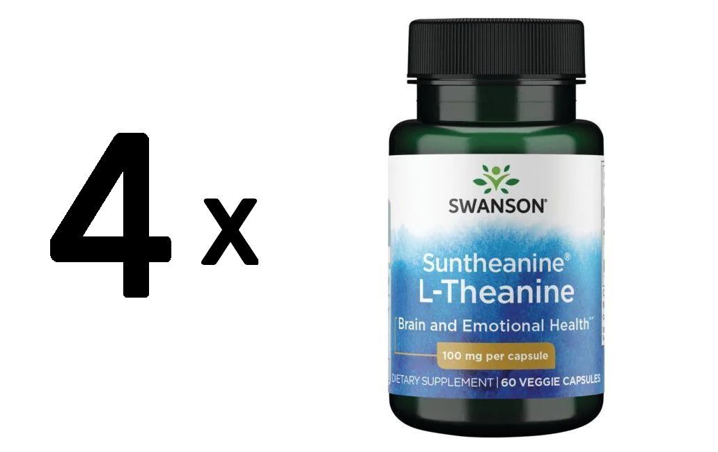 4 x Swanson Suntheanine L-Theanine, 100mg - 60 vcaps
