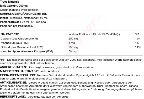 4 x Trace Minerals Ionic Calcium, 200mg - 59 ml