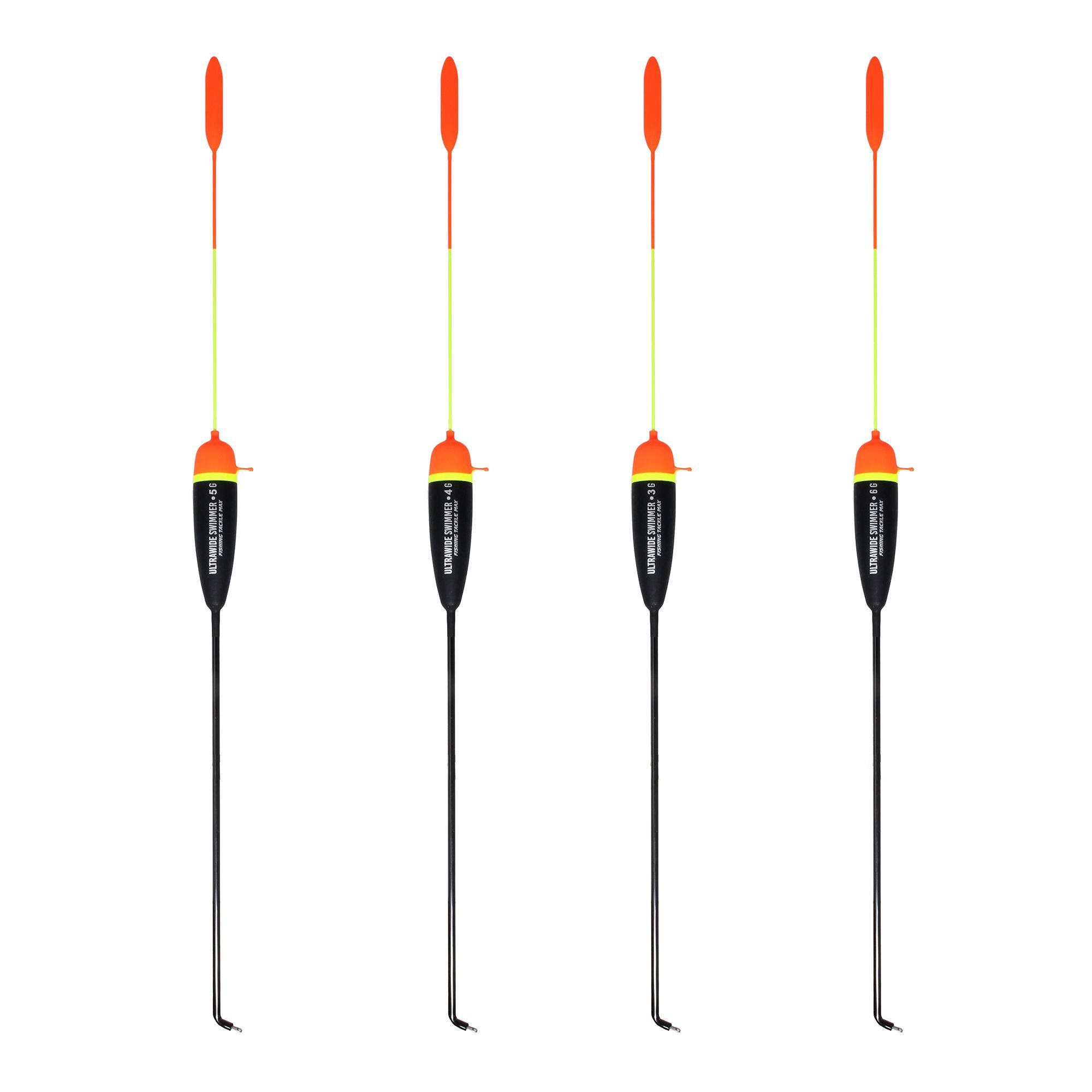 - Ultrawide Swimmer (Modell) - 1x Pose 3 g / 21 cm, 1x Pose 4 g / 22 cm, 1x Pose 5 g / 23 cm und 1x Pose 6 g / 24 cm (Set-Inhalt) - extrem schlank (Form) - extra lang, sehr gut sichtbar (Antenne) - groß, für leichtgängigen Schnurlauf (Öse) - Zander, Aal, andere vorsichtige Räuber (Zielfische) - Komplett-Set für verschiedene Montagen - extrem schlanke Form für feinste Bisserkennung - lange Antennen auch auf Distanz klar erkennbar - große Öse für optimalen Schnurlauf - ideal für kleine Köderfische