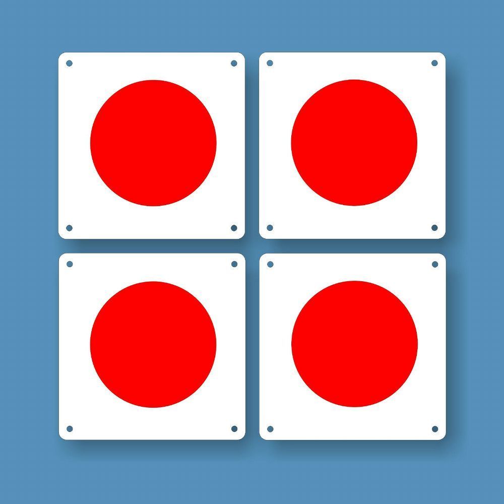 4 Zirkelpunkte rot (20 x 20 cm) für Dressurviereck, hochwertige Aluverbundtafeln