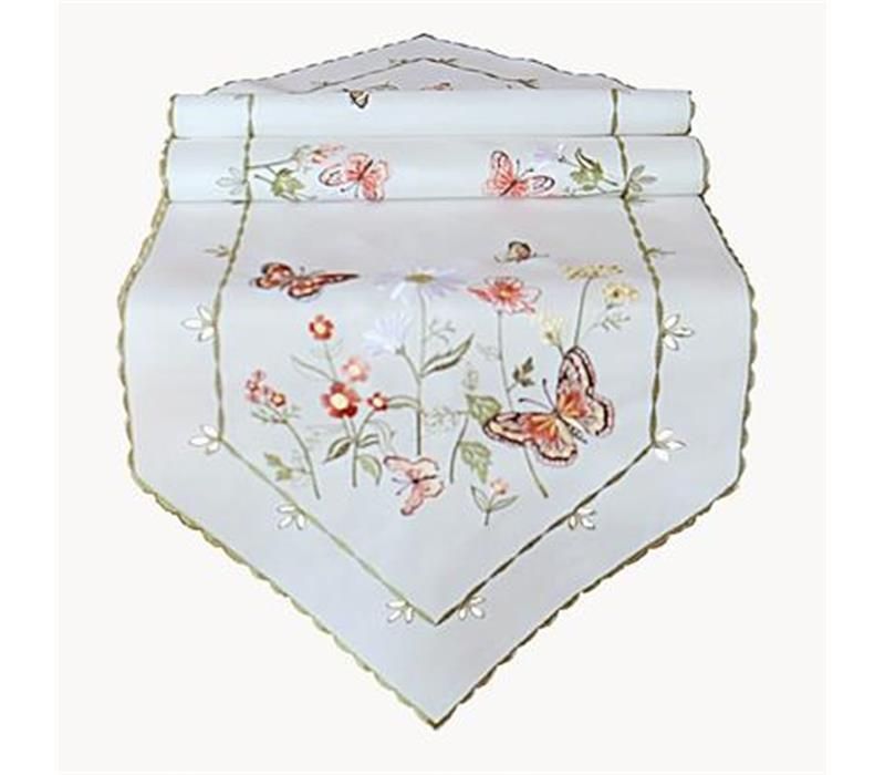 40/140 cm - Tischdecke - Orange Stickerei ''Schmetterlinge und Blüten''