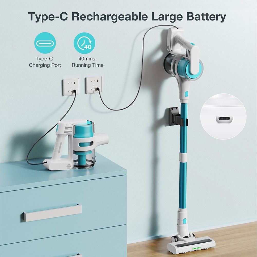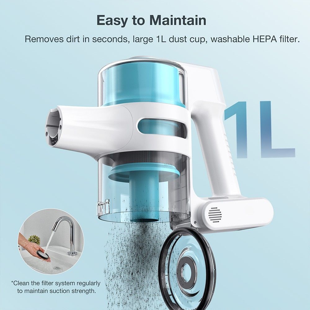 40 Minuten Laufzeit 18 kPa MOOSOO S6, kabelloser Stabstaubsauger mit 5-stufiger HEP