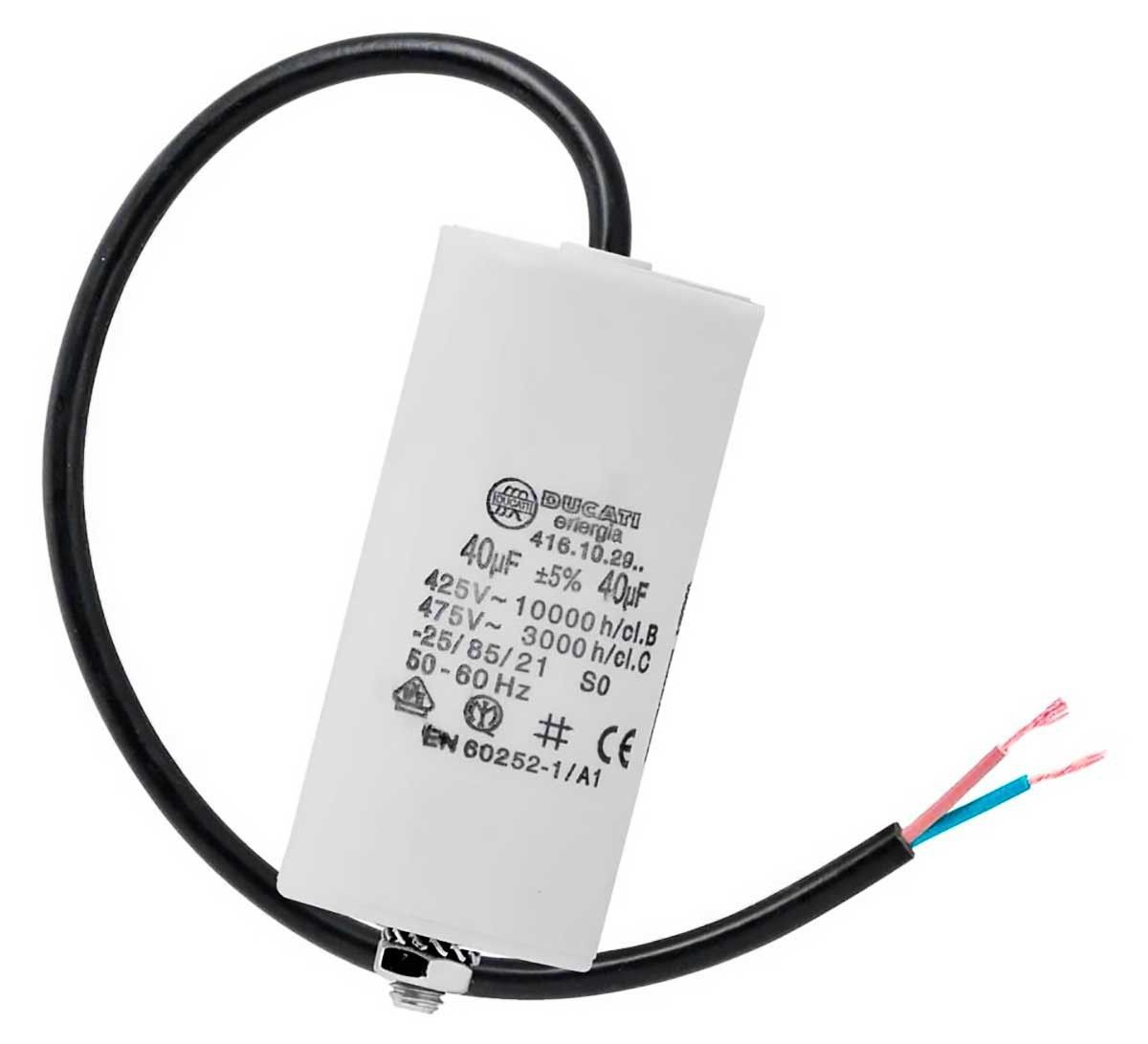 40 uF Motorkondensator 40uF Betriebskondensator 40 µF + Kabel Kunststoff Ducati
