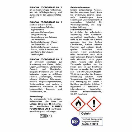 400 ml Plantax Foodgrease LM2 Haftschmierfett NSF-Registrierung