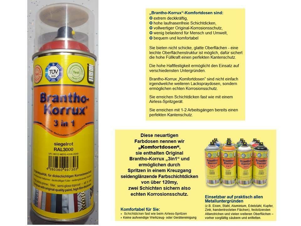 400ml Brantho Korrux "3in1" RAL 3000 siegelrot Komfort-Dose Spraydose Branth