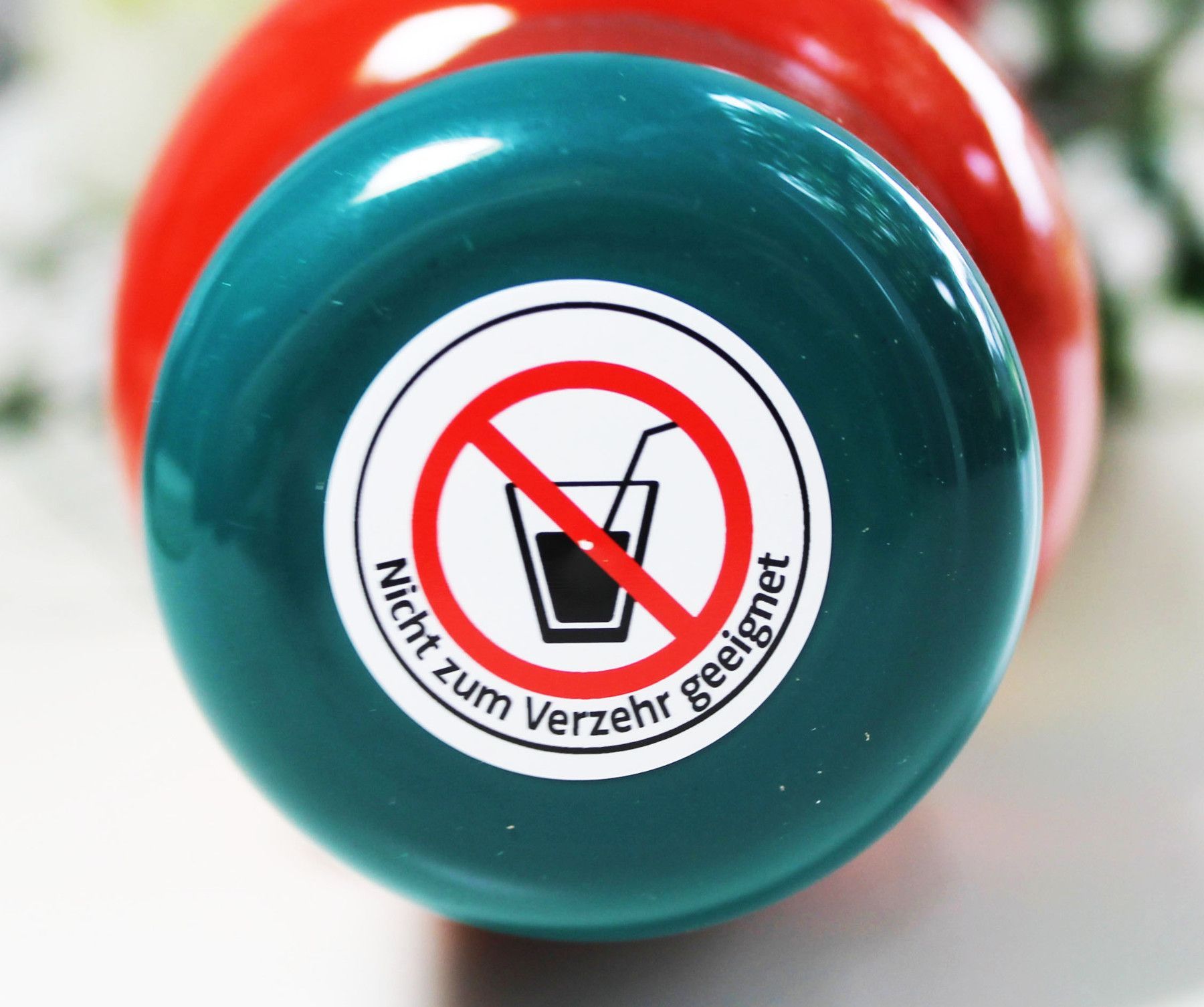 • unverdünntes Produkt bei direktem Kontakt mit Gegenständen oder Haut gleich mit Wasser abspülen.