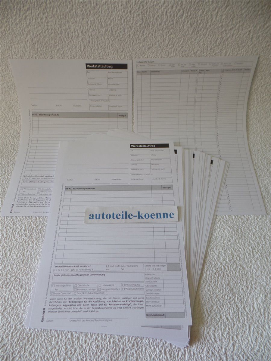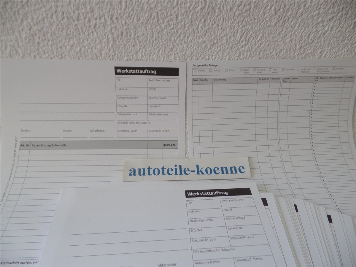 400x DIN A4 Werkstattauftrag KFZ Reparatur Auftragskarten Arbeitskarten