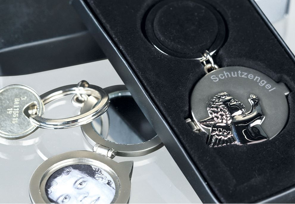 40477 Schlüsselanhänger Fotorahmen Schutzengel aus Metall silber L 7 cm