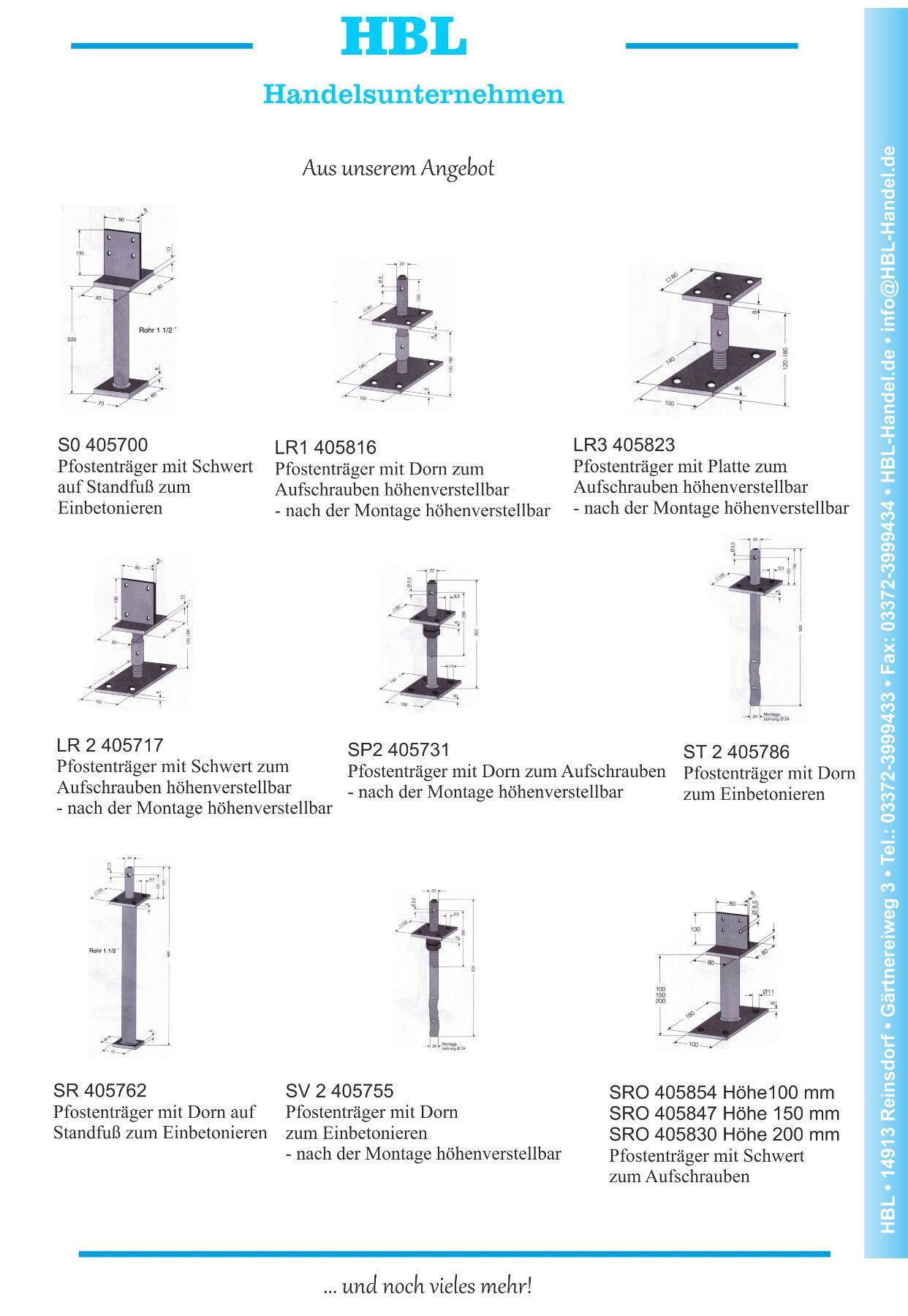 • 405724 Pfostenträger Dorn, aufschraubbar, höhenverstellbar, 80er