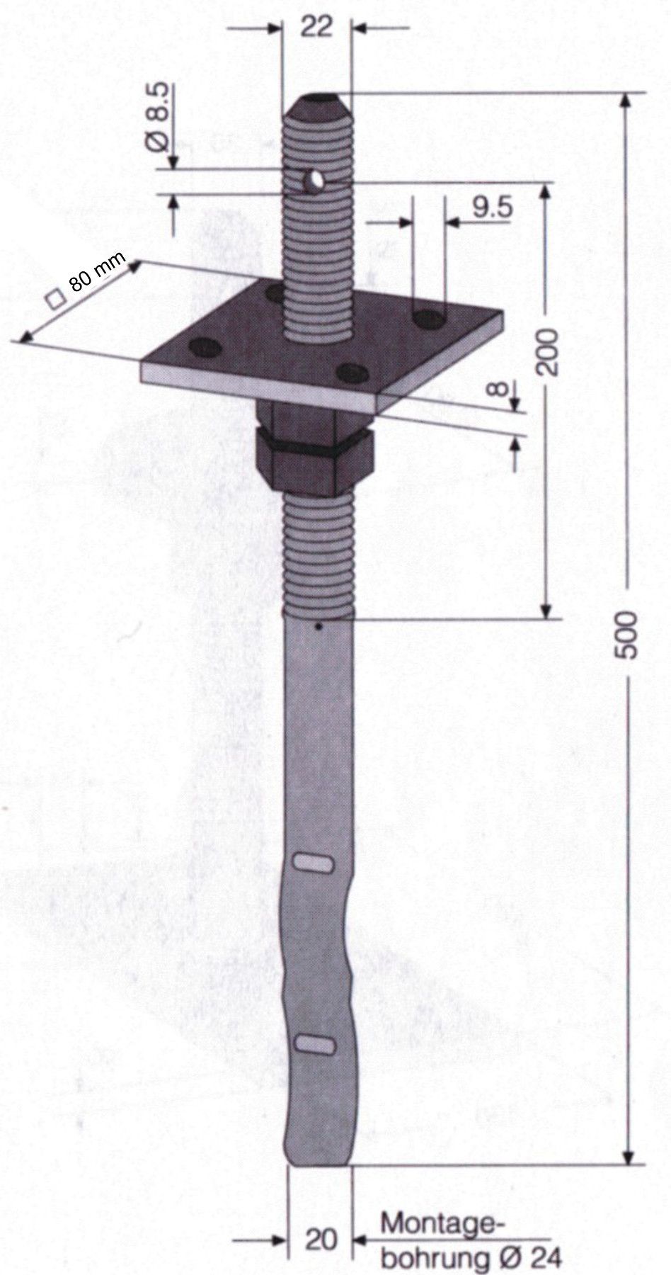 405748 Pfostenträger Dorn, höhenverstellbar, zum Einbetonieren, 80er