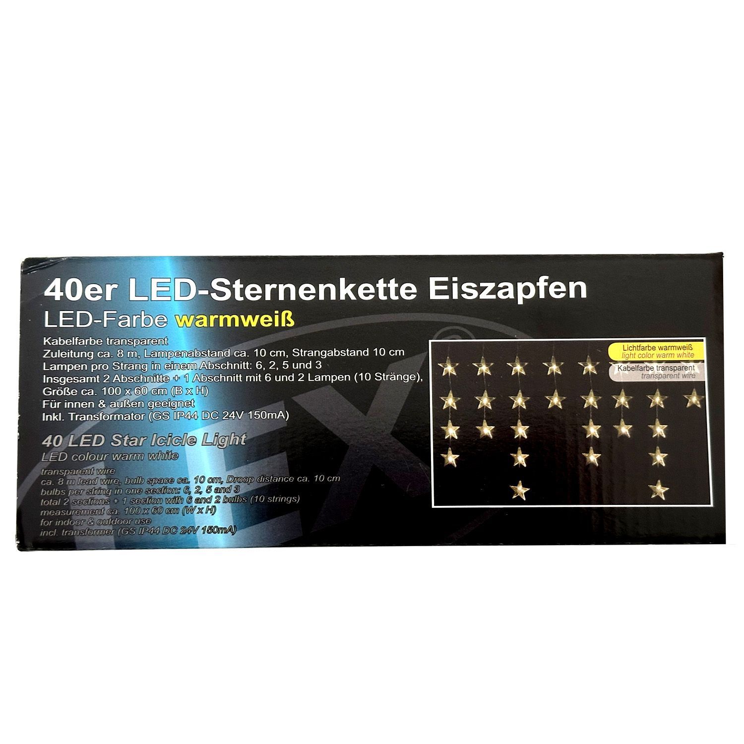 40er LED-Sternenvorhang Lichterkette Lichtervorhang Innen und Außen warmweiß