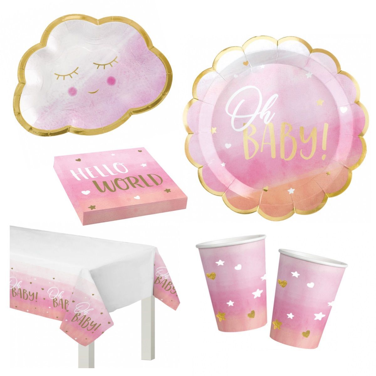41-tlg. Party Set Baby Shower Babyparty OhBaby Girl Geschirr Teller Becher Deko 41-teiliges Party Set - Baby Shower Babyparty - Oh Baby Girl - 8 Personen Hier das super süße Deko Party Set für Ihre Babyparty. In einem schönen rosa Girl - Design mit goldenen Details. Das Set besteht aus: 8 Pappteller