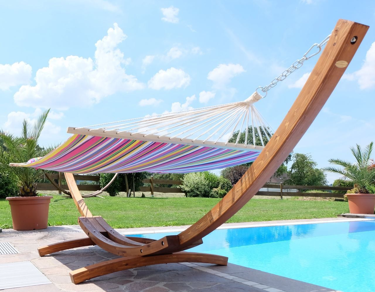 410cm Hängemattengestell PINK aus Holz Lärche mit Stab Hängematte (GEPOLSTERT)