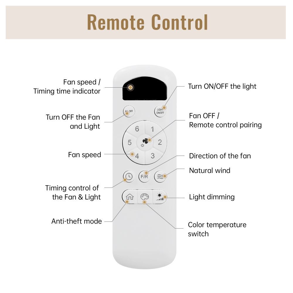 42 Zoll Deckenventilator LED 18W Fernbedienung ABS 5 Flügel