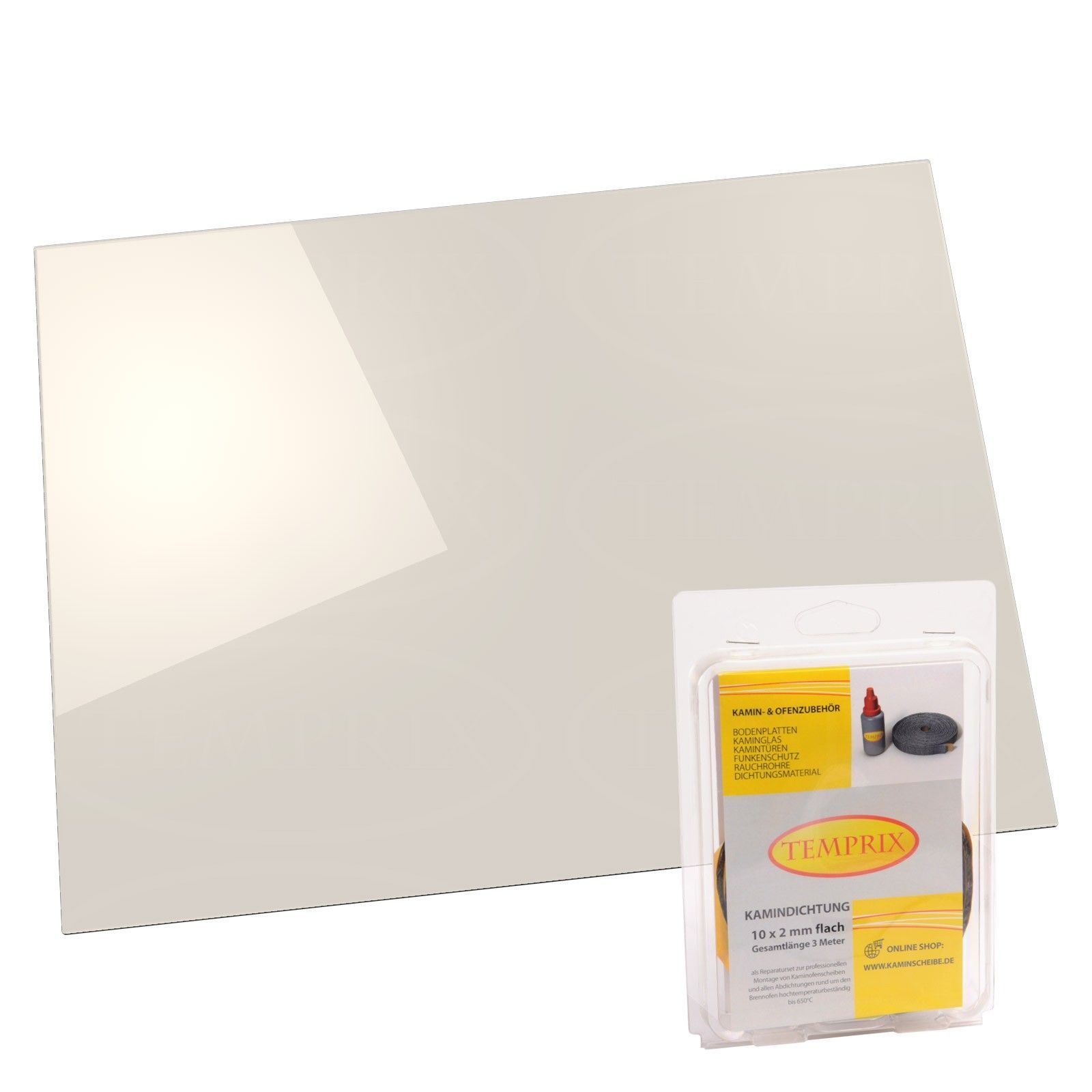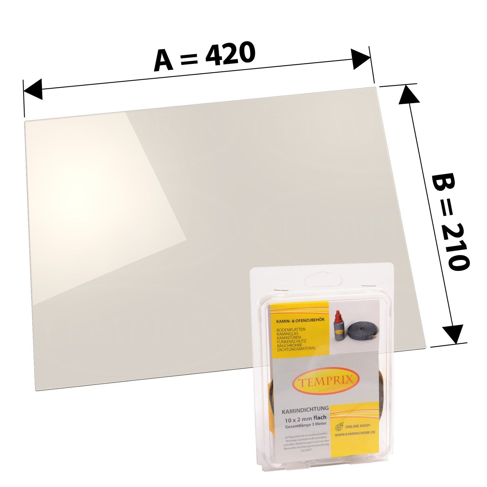 420 x 210 x 4 mm Kaminglas ohne/mit Dichtungsset Ofenscheibe plan für Ofen Kamin
