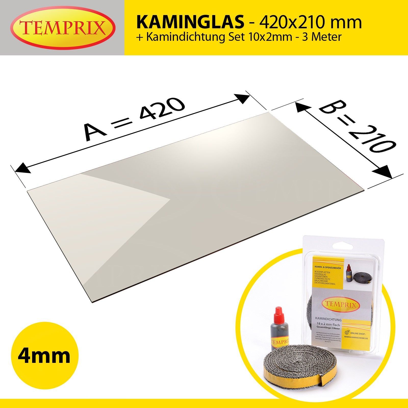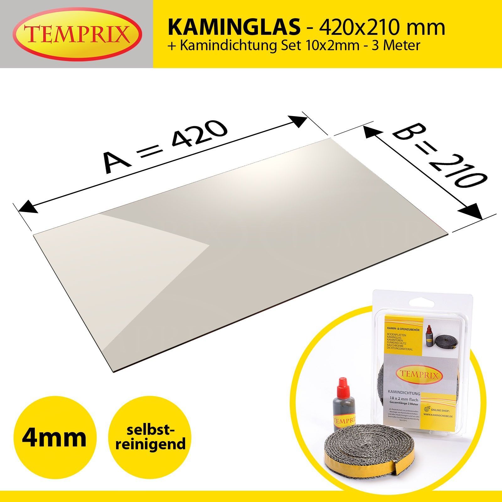 420 x 210 x 4 mm Kaminglas ohne/mit Dichtungsset Ofenscheibe plan für Ofen Kamin