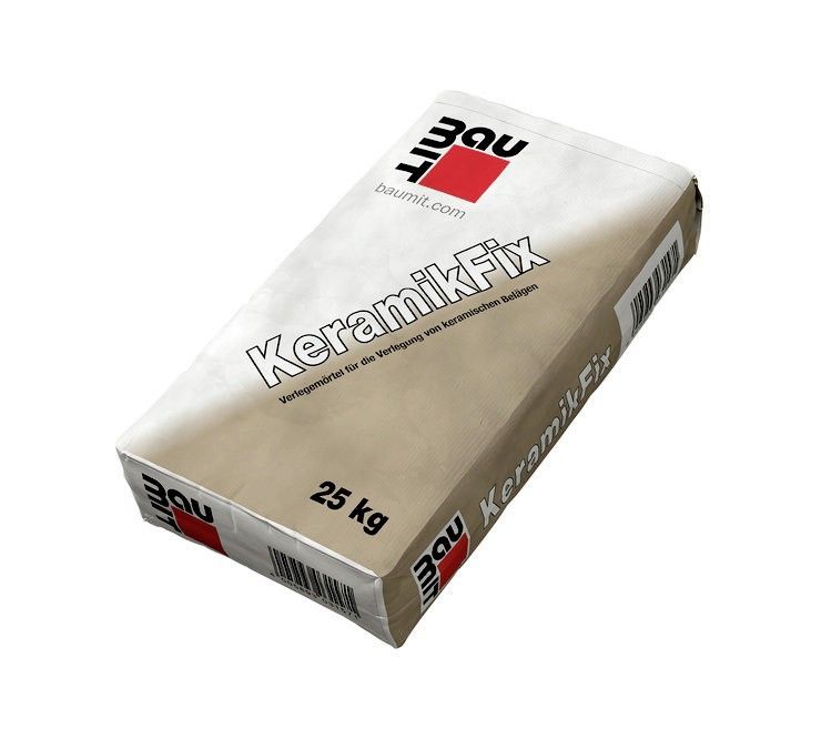 42x Baumit KeramikFix 25 kg Details für KeramikFix 25 kg: Klebemörtel für die flexible Verklebung im Dünnbettverfahren Wasser- und frostfester Klebemörtel für die flexible Verklebung im Dünnbettverfahren. Zur Verlegung von keramischen Fliesen, Platten, Riemchen, Steingut, Feinsteinzeug im Fassadenbe