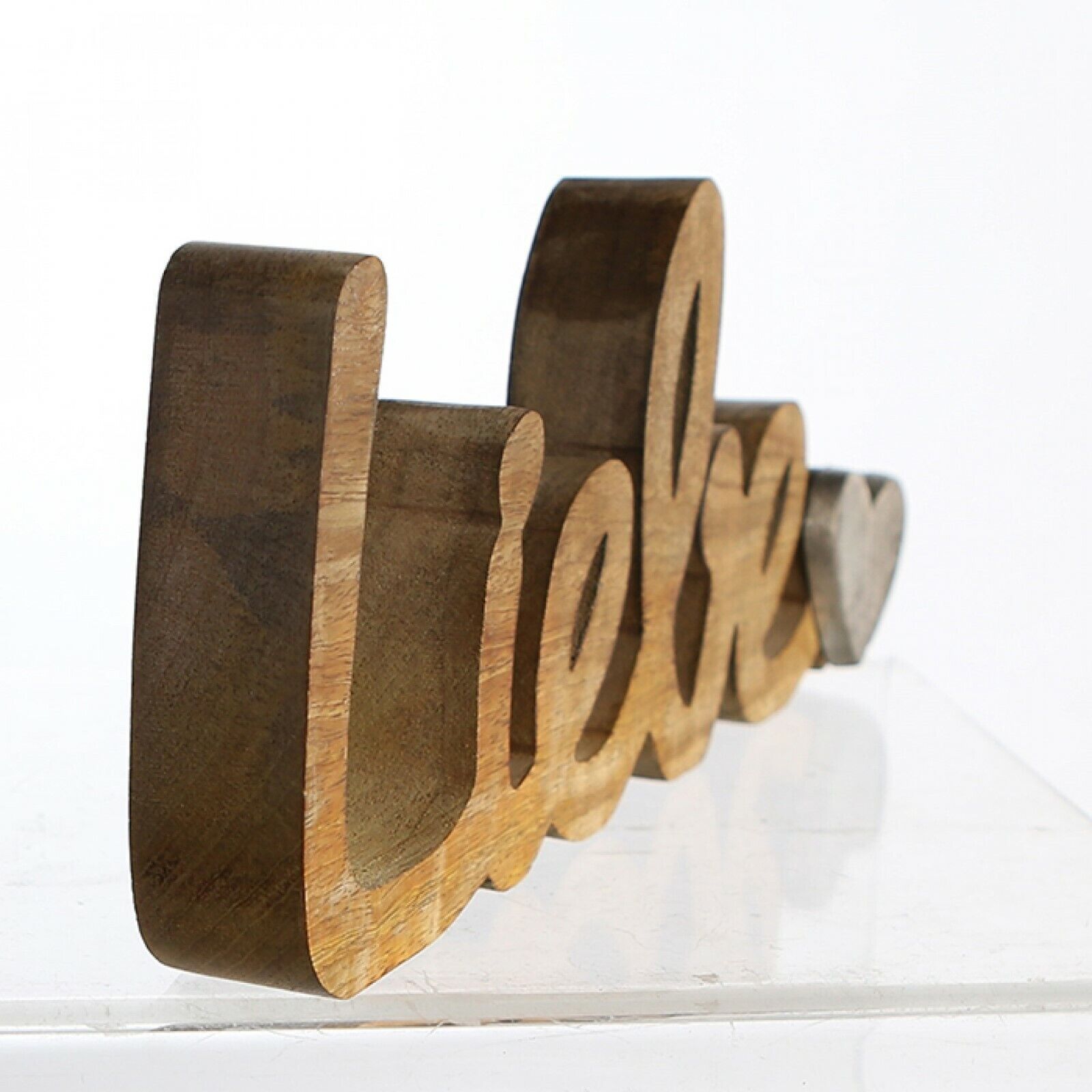 43289 Schriftzug Liebe Mangoholz naturbelassen mit Herz Aluminium silberfarben