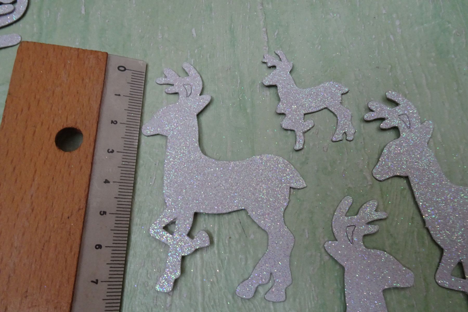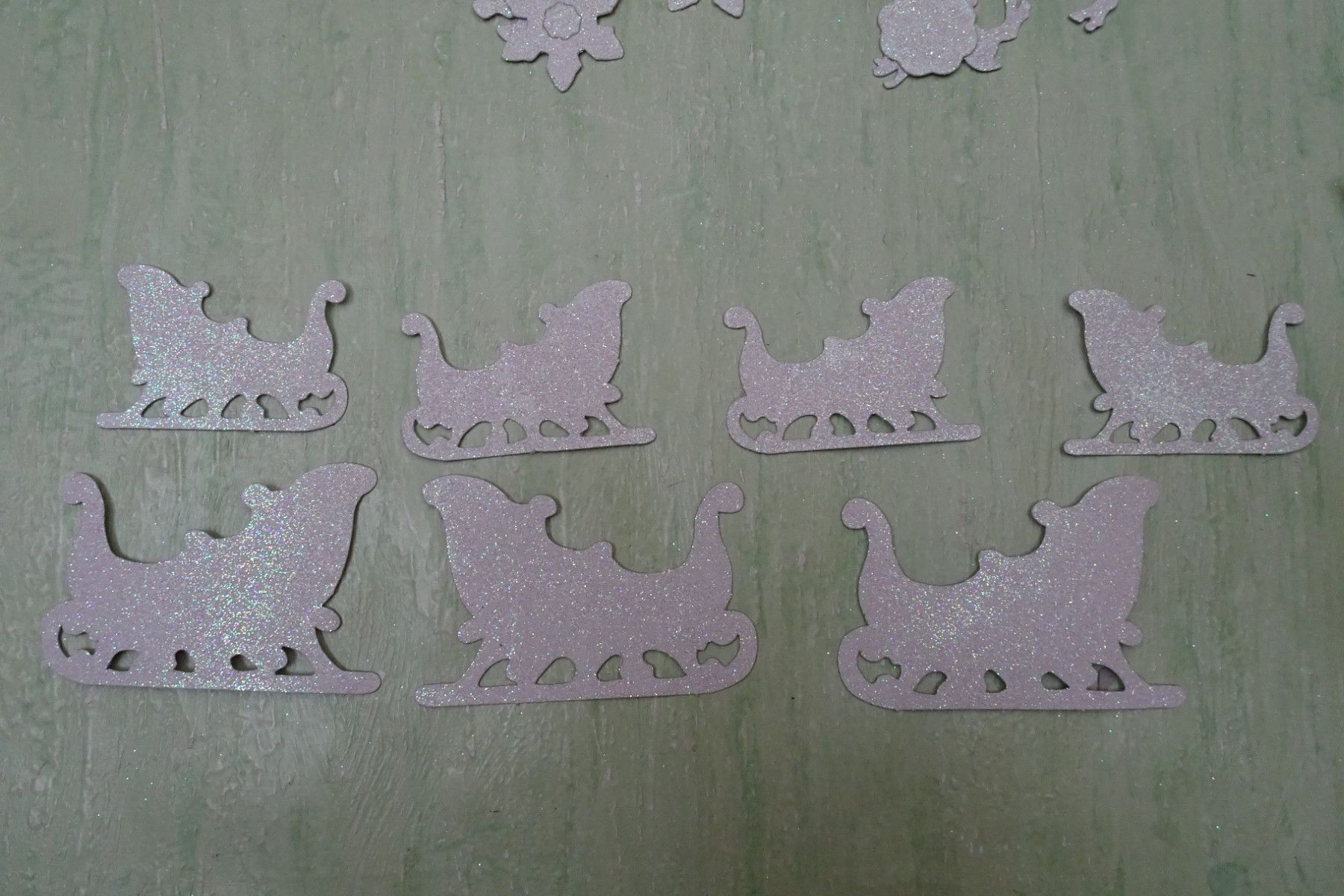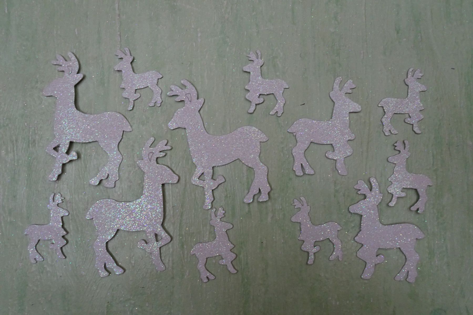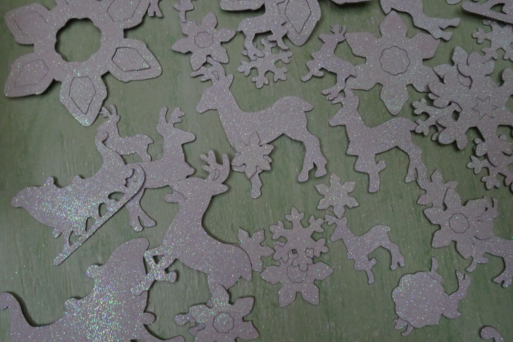 45 Streuteile Tischdekoration silber-Glitter Rentiere Schlitten Sterne Schnee