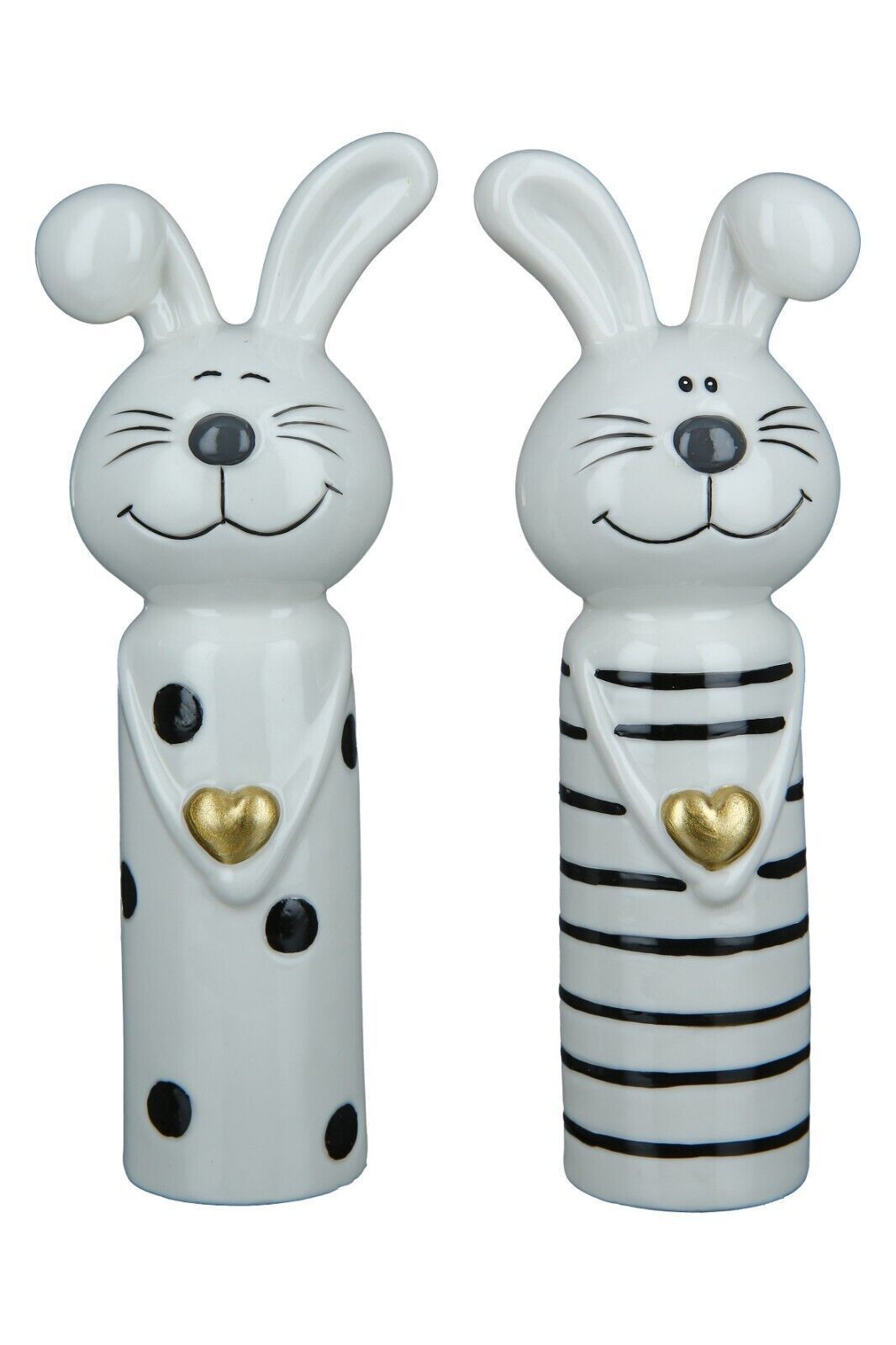 Gilde 47317 Hasen Paar Loving mit Herz schwarz/weiß/goldfarben, mit Streifen/Punkten